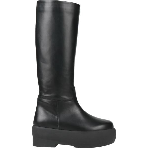 Stivali da donna in nero pece con tacco squadrato a punta tonda con zip in pelle