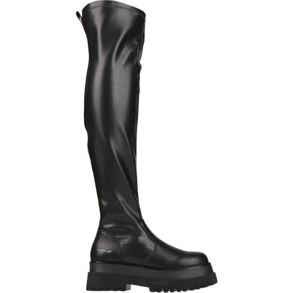 Stivali da donna in nero pece con tacco squadrato a punta tonda con zip