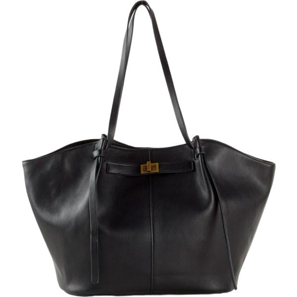 Maglione da donna in nero pece Bonprix, Pantalone chino da donna in nero pece curvy in viscosa Terranova, Mocassini da donna in nero pece Doppelganger, Shopping bag da donna in nero pece a fiori con zip Freddy.
