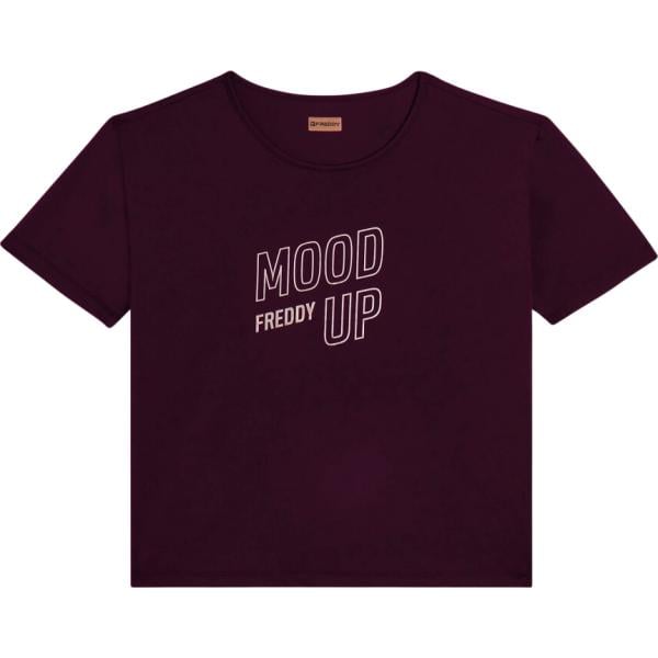 T-shirt sportiva da donna in viola scuro con stampe cropped a maniche corte in nylon