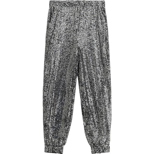 Pantaloni sportivi da donna in grigio scuro con paillettes a vita alta