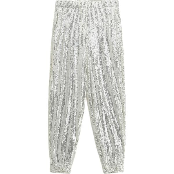 Pantaloni sportivi da donna in grigio chiaro con paillettes a vita alta