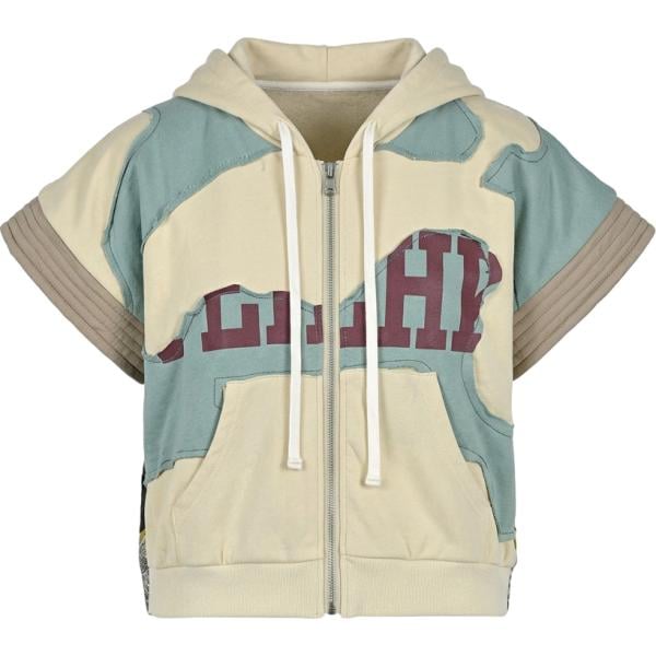 Felpa sportiva da donna in beige sabbia con stampe a maniche corte in nylon