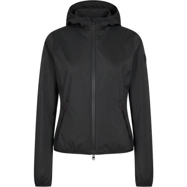 Giacca sportiva da donna in nero pece tessuto impermeabile con zip in nylon