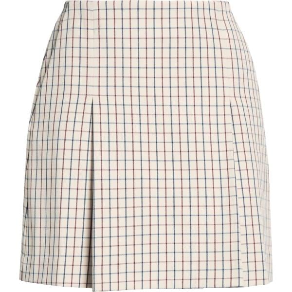 Gonna sportiva da donna in bianco neve a quadri corto con zip in poliestere