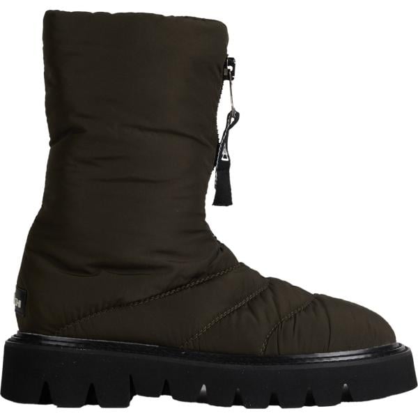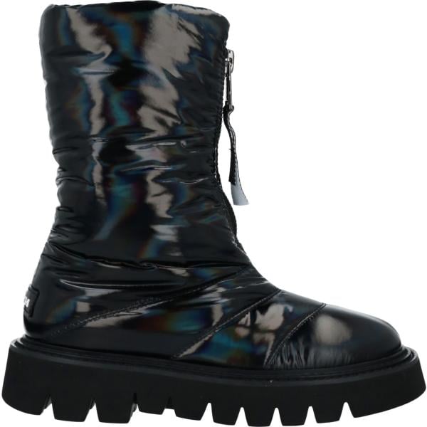Stivaletti imbottiti tessuto tecnico metallizzato tinta unita con applicazioni brand logo imbottitura sintetica chiusura con zip punta tonda senza tacco suola in gomma con incisioni calzata ampia Fibre tessili
