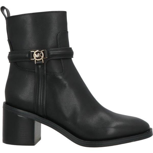 Stivaletti da donna in marrone scuro animalier con tacco a punta tonda con zip in pelle Michael Michael Kors
