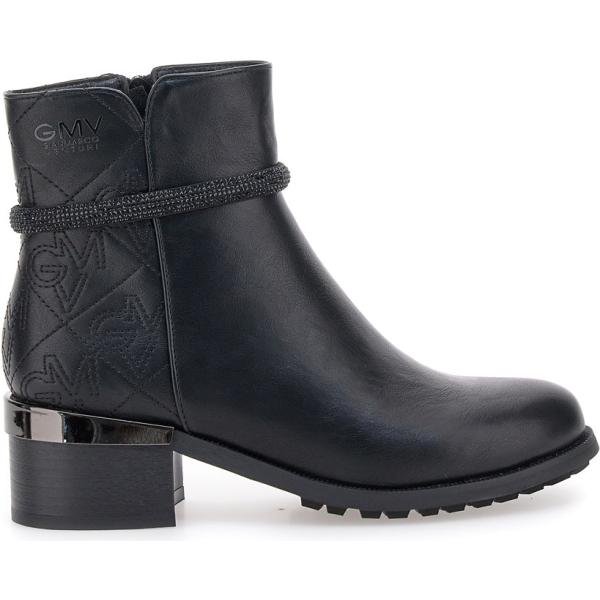 Dai un tocco di originalità ai tuoi look con gli stivaletti Gian Marco Venturi: con tomaia total black, tallone e parte del gambale posteriore in tessuto effetto scamosciato, cinturino decorativo alla caviglia, cerniera laterale e dettaglio effetto cromato sul tacco, si abbinano perfettamente ai pantaloni dal taglio sartoriale e pullover in maglia.