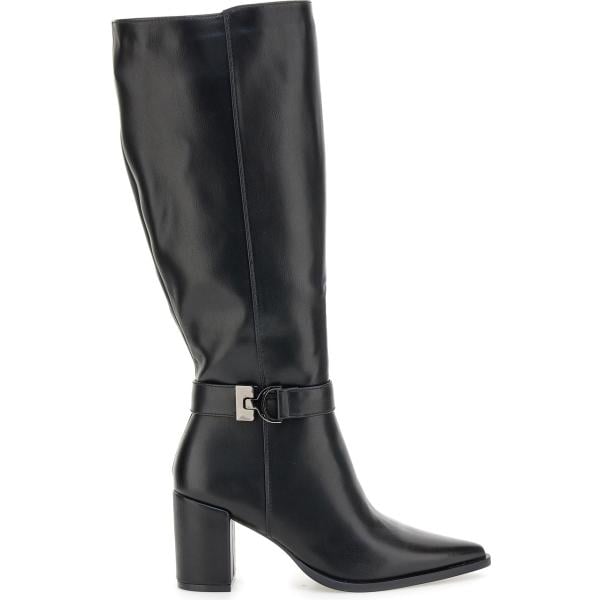 Gilet da donna con stampe Dixie. Stivali Mustang con tacco e fibbia decorativa in bianco. Camicia con scollo rotondo e stampa panna Dixie. Gonna lunga da donna in beige sabbia plissè lungo con cintura Dixie.