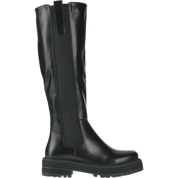 Leggings da donna in nero pece modellante bonprix, Camicia a maniche corte da donna in nero pece a maniche corte bonprix, Borsa a tracolla da donna in nero pece bonprix, Stivali da donna in nero pece con plateau bonprix, Giacca da donna in nero pece bonprix.