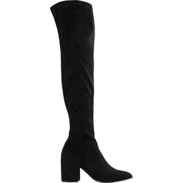 Stivali sopra il ginocchio da donna in nero pece con tacco con zip Rinascimento