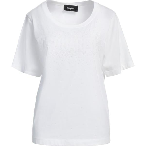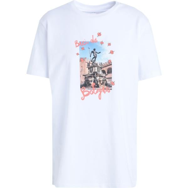 T-shirt da donna forma asimmetrica in bianco neve con pizzo girocollo Please