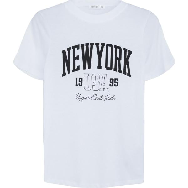 T-shirt da donna in bianco neve con stampe a maniche corte in cotone Terranova