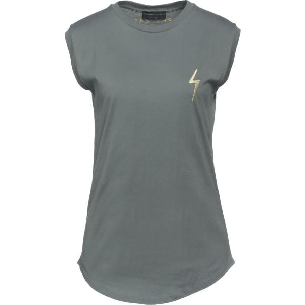 T-shirt da donna in grigio scuro con stampe con ruches girocollo a maniche corte in cotone Terranova
