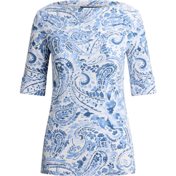 T-shirt da donna mini in bianco neve con scollo in cotone Lauren Petite
