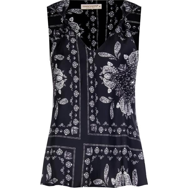 Top da donna a goccia in bianco neve made in italy senza maniche con fibbia in metallo Rinascimento