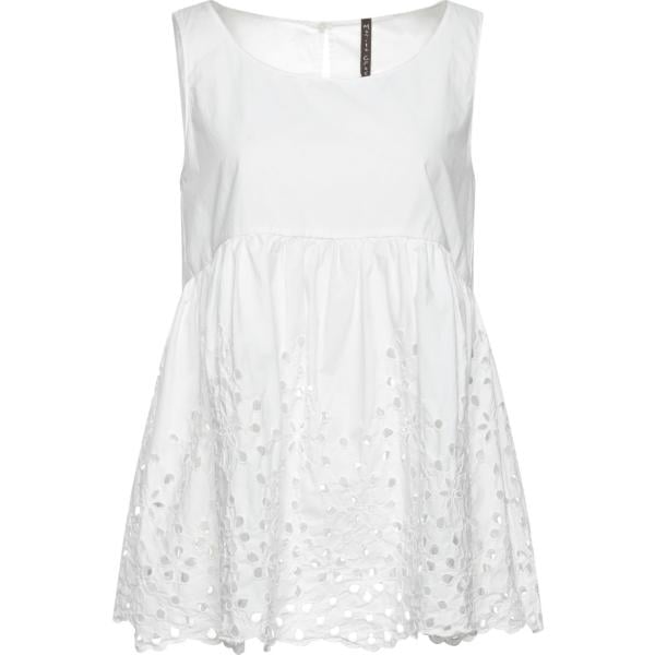 Pochette da donna in nero pece in metallo Victoria Beckham, Top da donna in bianco neve con spalline made in italy con zip in poliestere Rinascimento, Giacca da donna in azzurro senza maniche con cintura Imperial, Pantaloni da donna in nero pece a vita alta con zip in viscosa Loulou Studio, Pantofole da donna in bianco neve con tacco in viscosa D'Accori.