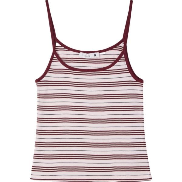 Un top a spalline sottili, perfetto per chi ama giocare con lo stile urbano e spontaneo ogni giorno. Le righe oblique si incrociano con un bordo in pizzo asimmetrico che aggiunge un twist inaspettato al look. Ideale per sperimentare abbinamenti e sfoggiare personalità, dal denim ai pantaloni larghi.