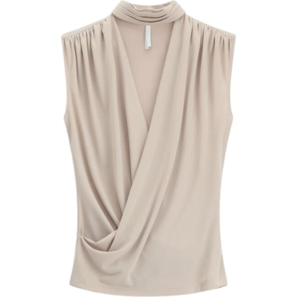 Top da donna in bianco avorio con stampe con pizzo collo alto corto a maniche corte Imperial