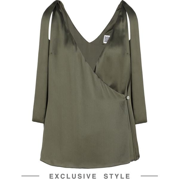 Braccialetto da donna in grigio chiaro Ralph Lauren, Ballerine da donna in verde oliva con fiocco Lauren, Giacca da donna in nero pece con cintura Imperial, Borsa tote da donna in verde oliva effetto scamosciato Lauren, Top da donna in verde oliva con spalline Imperial, Pantaloni a palazzo da donna in nero pece a vita alta Dixie.