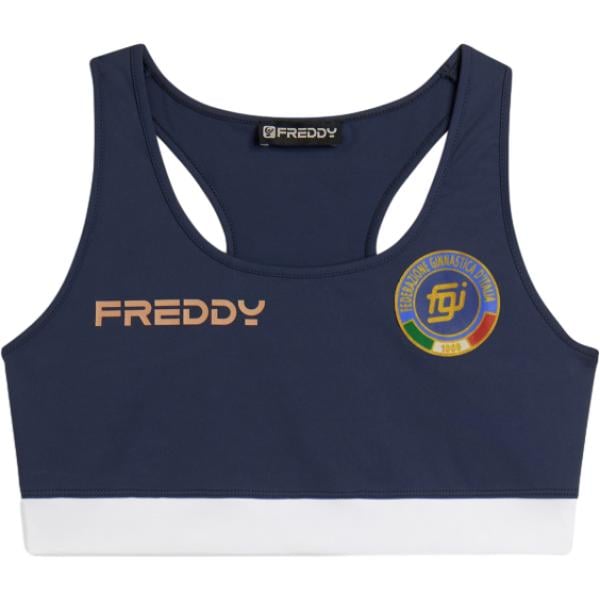 Top sportivo da donna in bianco neve con stampe girocollo senza maniche