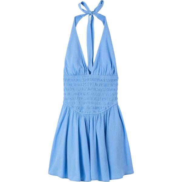 Tuta corta da donna in azzurro con scollo corto in viscosa