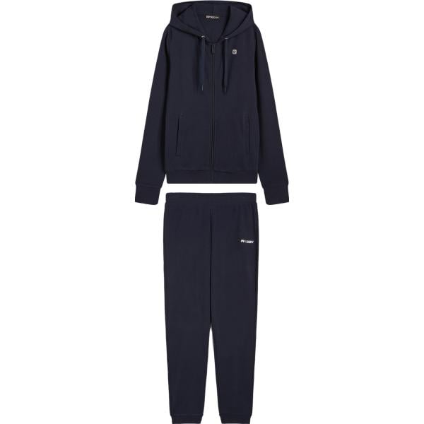 Tuta sportiva con vestibilità regular in cotone interlock una lavorazione che conferisce al tessuto morbidezza compattezza e flessibilità e dona perciò grande comfort e libertà di movimento a entrambi i capi che compongono la tuta. La felpa ha cappuccio con coulisse chiusura a zip a tutta lunghezza tasche interne a filetto e fondo e polsini in costina. Il pantalone ha tasche interne e vita e fondo a polsino in costina. Felpa e pantalone sono decorati da un piccolo logo Freddy rispettivamente sul fronte lato cuore e sul fianco sotto la tasca.