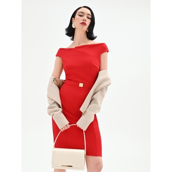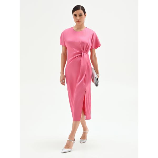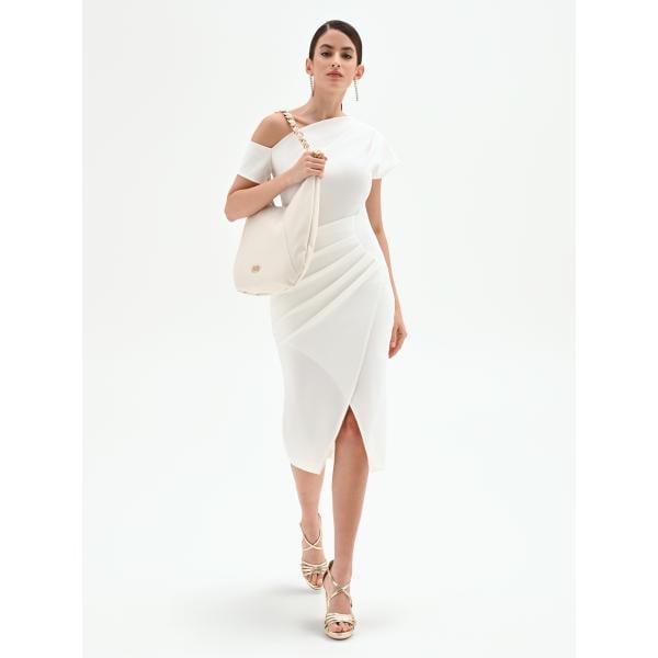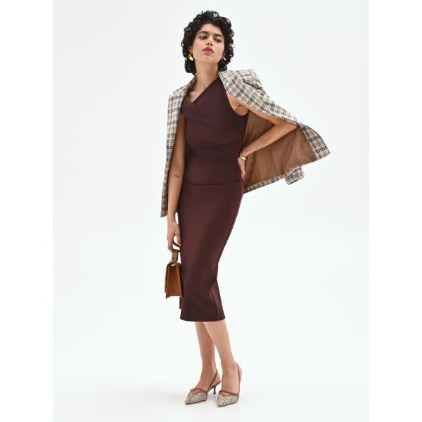 Vestito asimmetrico da donna in nero pece con scollo con zip