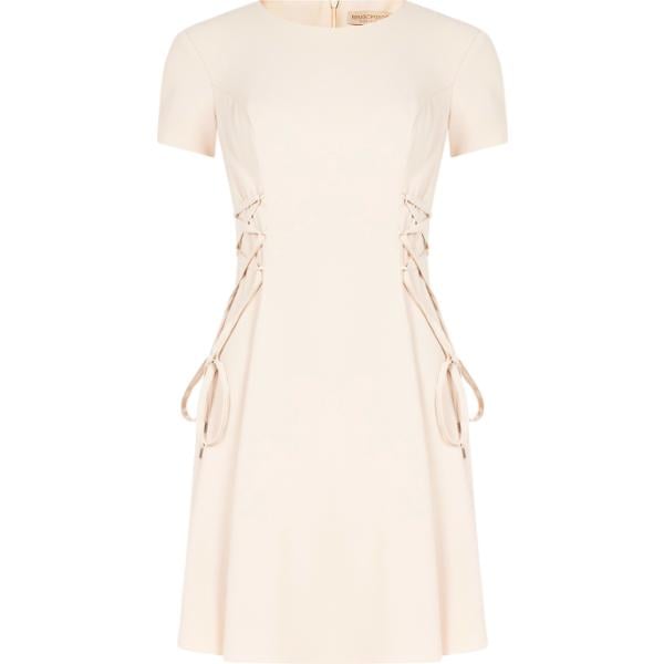 Vestito corto da donna in bianco avorio girocollo corto a maniche corte con zip in metallo