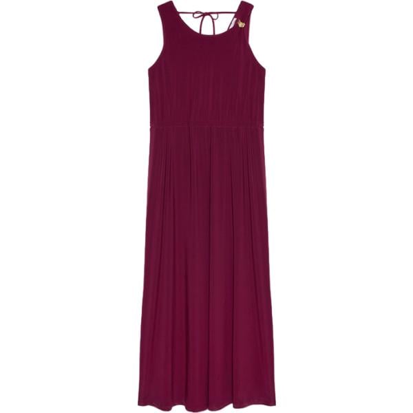 Vestito lungo da donna in bordeaux con scollo lungo senza maniche con lacci in poliestere
