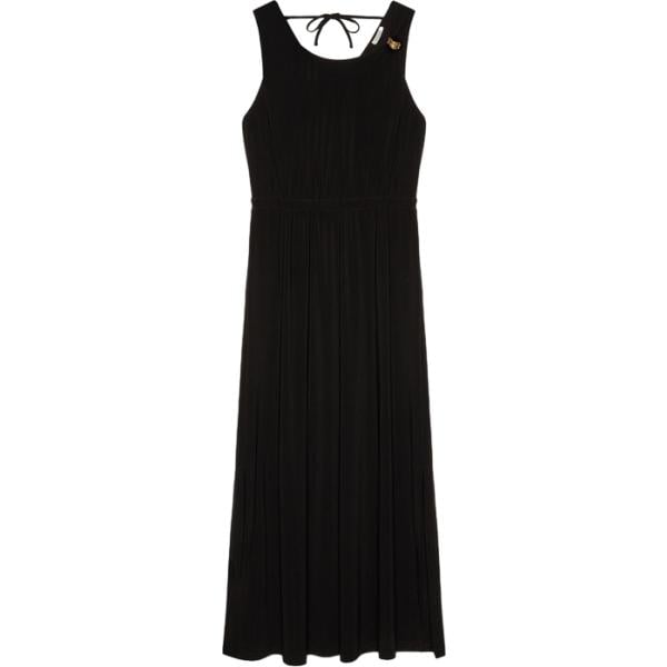 Vestito lungo da donna in nero pece con scollo lungo senza maniche con lacci in poliestere