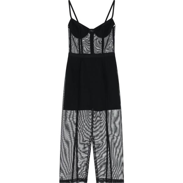 Vestito longuette/midi da donna in nero pece con spalline con zip