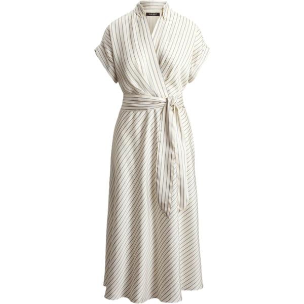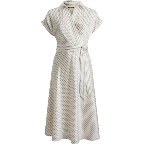 Vestito longuette/midi da donna in bianco avorio a righe collo a v con cintura