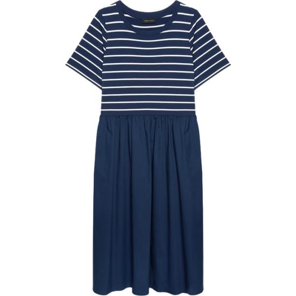 Vestito longuette/midi da donna in blu scuro a righe con scollo a maniche corte in cotone