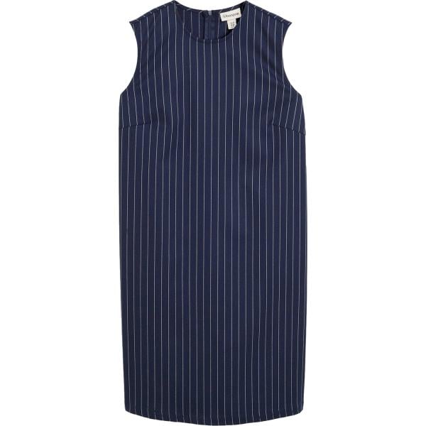 Vestito lungo da donna in blu scuro a righe collo classico lungo a maniche lunghe