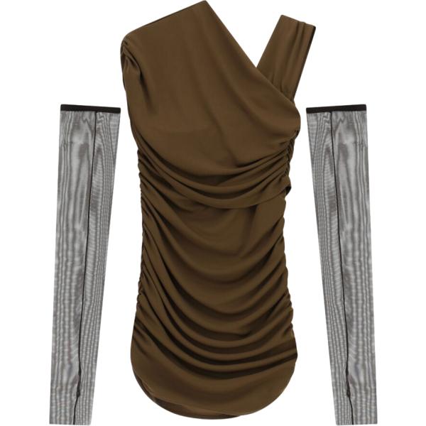 Vestito asimmetrico da donna in nero pece con pizzo con spalline Imperial