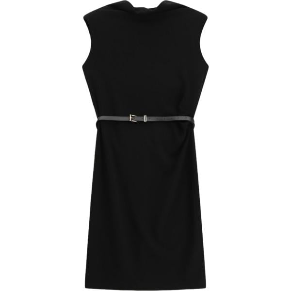 Abito corto dalla linea svasata, caratterizzato da un raffinato taglio senza maniche e scollatura girocollo. La silhouette moderna, arricchita da una gonna morbida e plissettata, offre una soluzione distintiva per chi desidera esprimere individualità e ricercatezza nelle occasioni più esigenti.