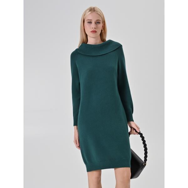 Il vestito incrociato sul davanti è arricchito dalle gale dello scollo e dell'orlo. La fantasia a micropois neri su sfondo verde muschio è sobria e molto adatta all'ufficio. Gli stivali neri con tacco comodo, il cappottino doppiopetto e il cappellino di lana sono accessori che si adattano perfettamente al capo. Per completare l'outfit la piccola tracolla verde opaco che da un tocco glam all'insieme.