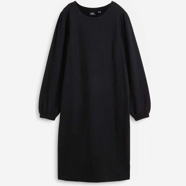 Stivali da donna in nero pece Bonprix, Borsa a mano da donna in nero pece con zip By Byblos, Vestito da donna in nero pece a quadri lavorato a maglia Bonprix, Cintura da donna in nero pece con perle con fibbia Doppelganger, Kimono da donna in nero pece in viscosa Terranova.