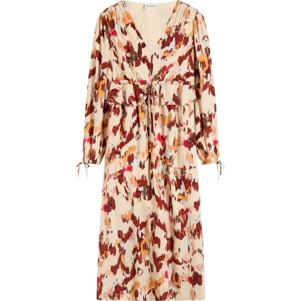Vestito longuette/midi da donna in marrone chiaro con stampe a maniche lunghe Please