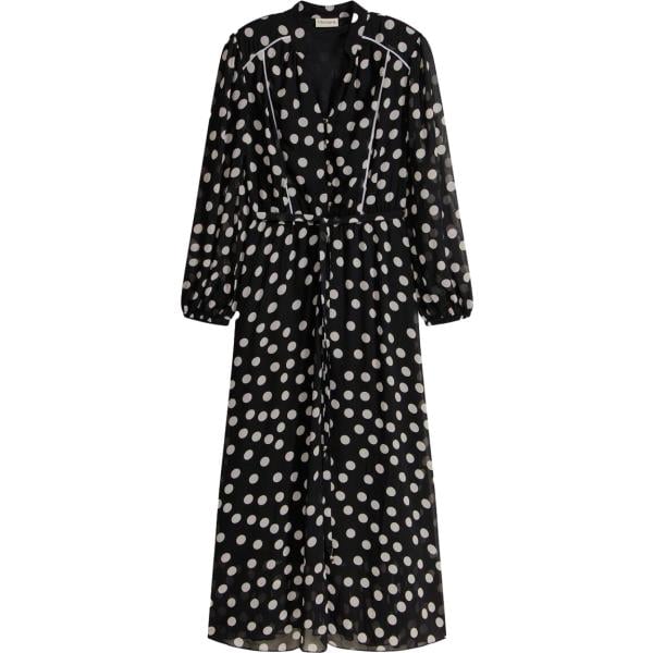 Questo abito midi conquista con il suo design sofisticato che esalta la figura e il gusto raffinato di chi lo indossa. Il taglio semplice e le fini spalline si combinano con un elegante scollo a v decorato da preziosi dettagli. Perfetto per la metropoli, si adatta a innumerevoli occasioni, trasformando la quotidianità in un'elegante espressione di stile.