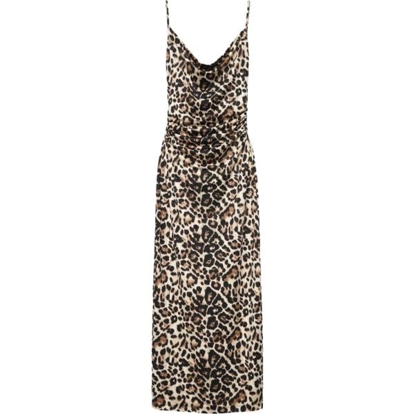 Sandali gioiello da donna in marrone chiaro con perle con cinturino Terranova, Cintura da donna in nero pece con fibbia in paglia Terranova, Vestito lungo da donna in blu scuro con scollo lungo in cotone Terranova, Pochette da donna Terranova.