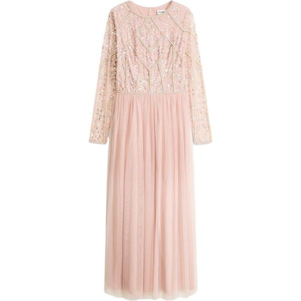 Vestito lungo da donna in rosa chiaro con pizzo collo a v lungo Dixie
