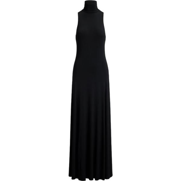 Vestito lungo da donna in rosso classico con scollo lungo Lauren