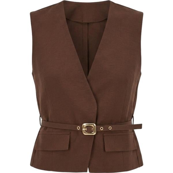 Gilet da uomo in marrone scuro con scollo con cintura in viscosa