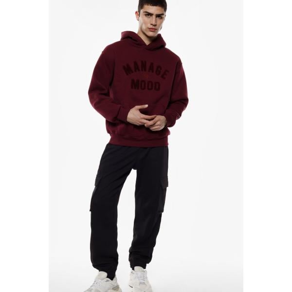 Felpa con cappuccio da uomo in nero pece collo con cappuccio