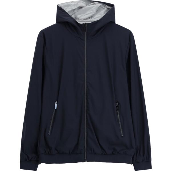 Bomber da uomo in blu scuro collo con cappuccio con zip