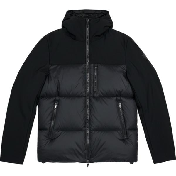 Piumino da uomo in nero pece effetto lucido lungo con zip in poliestere