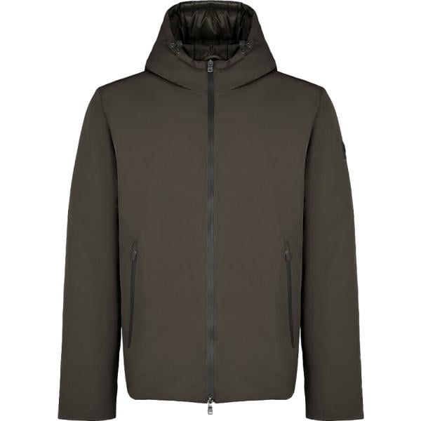 Parka da uomo in verde oliva collo con cappuccio tessuto impermeabile con zip in poliestere