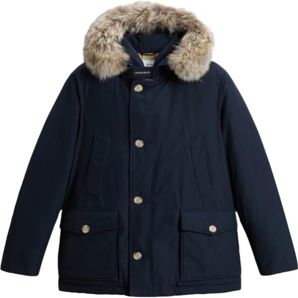 Cappotto da uomo in blu scuro a quadri collo classico con bottoni in lana